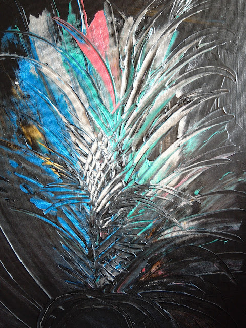 These are two new paintings - unnamed as yet - where I was enjoying playing with metallic paints against a black background. Acrylic on canvas they were done by painting the black background and then applying paint direct to the canvas and manipulating with a knife.
