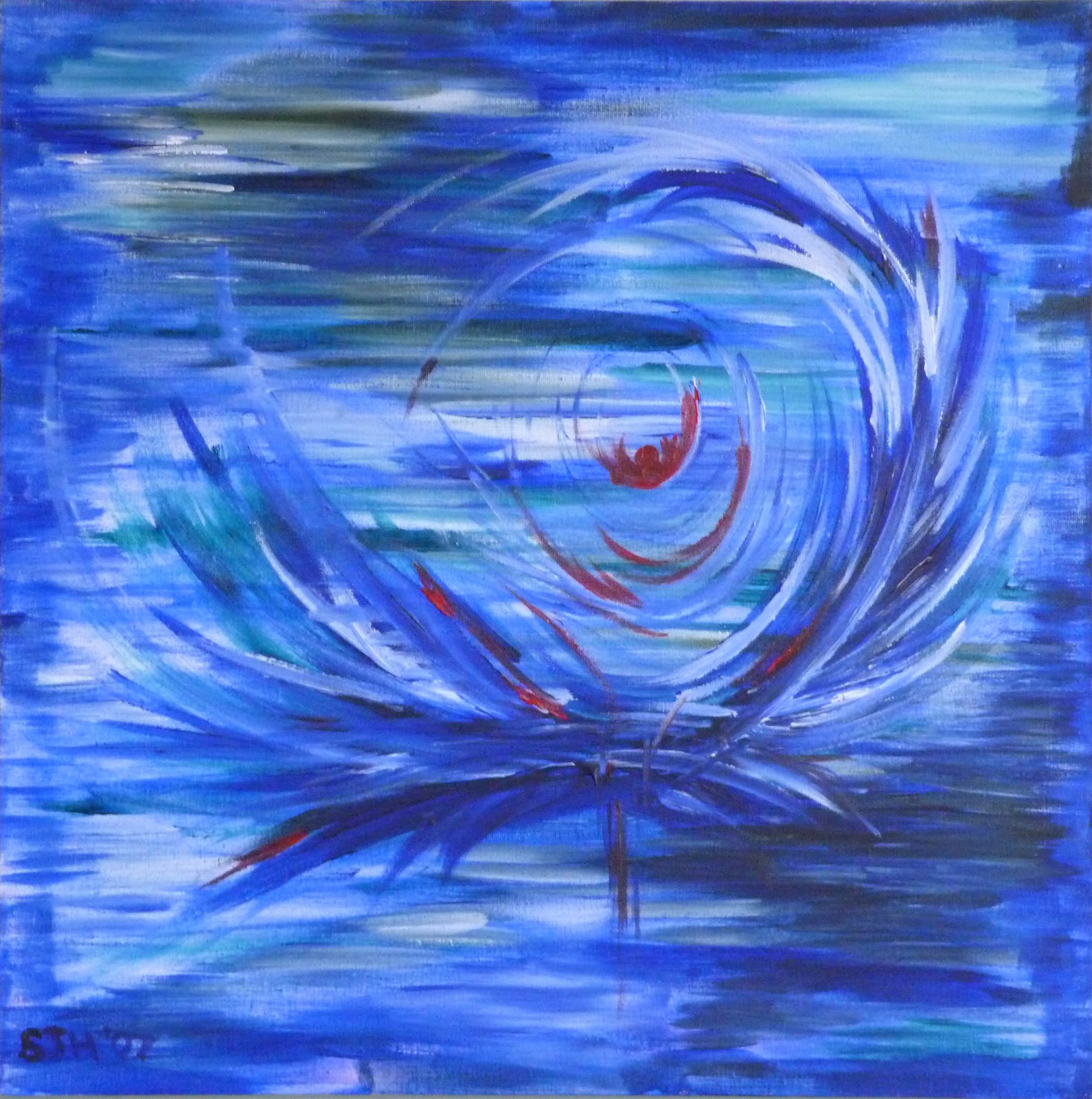 I find both of these paintings quite contemplative - almost meditative. Ripples or the surface of water is in some way the inspiration, but not in a straightforward naturalistic way but I have tried painting water and this resembles what I did then.