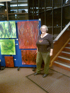 These show various views of the exhibition I had at Chesterfield Library, the work was well received in that I had lots of good comments and although I didn't make a direct sale from here "Blue Curve 2" was bought by my friend Jenny as a result of my sending information out to friends about the exhibition. She looked at the work on Red Bubble as she couldn't get to the exhibition itself.